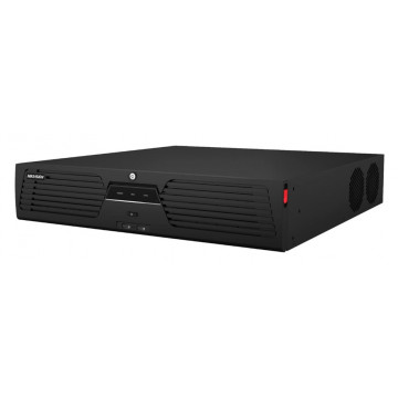IP-видеовход: 32-канальныйВходящая пропускная способность: 320 Мбит/сИсходящая пропускная способность: 400 Мбит/сHDMI 1 выход: 8K (7680 × 4320)/30 Гц, 4K (3840 × 2160)/60 Гц, 4K (3840 × 2160)/30 Гц, 2K (2560 × 1440)/60 Гц, 1920 × 1080/60 ГцВыход HDMI 2: 4K (3840 × 2160)/60 Гц, 4K (3840 × 2160)/30 Гц, 2K (2560 × 1440)/60 Гц, 1920 × 1080/60 Гц*: Если выходное разрешение HDMI 1 составляет 8K, максимальное выходное разрешение HDMI 2 составляет 1080p.Выход VGA 1: 1920 × 1080/60 ГцВыход VGA 2: 1920 × 1080/60 ГцРежим видеовыхода: HDMI 1 и VGA 1 обеспечивают одновременный вывод видео и работают как основной выход; HDMI 2 и VGA 2 обеспечивают одновременный вывод видео и работают как вспомогательный выходВыход CVBS: 1-канальный, BNC (1,0 Впик-пик, 75 Ом), разрешение: PAL: 704 × 576, NTSC: 704 × 480Аудиовыход: 2-канальный, RCA (линейный, 1 кОм)Двусторонняя аудиосвязь: 1-канальный, RCA (2,0 Впик-пик, 1 кОм, с использованием аудиовхода)Формат декодирования: H.265+/H.265/H.264+/H.264Разрешение записи: 32 МП/24 МП/12 МП/8 МП/7 МП/6 МП/5 МП/4 МП/3 МП/1080p/UXGA/720p/VGA/4CIF/DCIF/2CIF/CIF/QCIFСинхронное воспроизведение: 16-канальныйВозможность декодирования: 2-канальный@32 МП (30 кадров/с) + 2-канальный@8 МП (30 кадров/с)/10-канальный@8 МП (30 кадров/с)/20-канальный@4 МП (30 кадров/с)/40-канальный@1080p (30 кадров/с)Сжатие звука: G.711ulaw/G.711alaw/G.722/G.726/AAC/MP2L2/PCMСетевой протокол: TCP/IP, DHCP, IPv4, IPv6, DNS, DDNS, NTP, RTSP, SADP, SMTP, SNMP, NFS, iSCSI, ISUP, UPnP™, HTTP, HTTPS, ONVIF (версия 2.2), OTAPСетевой интерфейс: 2, самоадаптивный интерфейс Ethernet RJ-45 10/100/1000 Мбит/сПротокол доступа к камере: ONVIF(версия 2.5), RTSPТип RAID-массива: RAID0, RAID1, RAID5, RAID6, RAID10Последовательный интерфейс: 1 RS-485 (полный дуплекс), 1 RS-232Интерфейсы SATA: 8 интерфейсов SATA с поддержкой горячего подключенияИнтерфейс eSATA: 1 интерфейс eSATAЕмкость: Емкость каждого диска до 16 ТБВход/выход сигнала тревоги: 16/9USB-интерфейс: Передняя панель: 2 × USB 2.0; Задняя панель: 2 × USB 3.0Ctrl 12В: Управляемый выход питания 12 В постоянного тока, 1 А для внешнего устройства сигнализации; питание включается при срабатывании выхода сигнализации. *12 В постоянного тока: Выходная мощность 12 В постоянного тока, 1 АИсточник питания: 100–240 В переменного тока, 50–60 ГцПотребление: ≤ 50 Вт (без жесткого диска)Рабочая температура: -10 °C до 55 °C (от 14 °F до 131 °F)Рабочая влажность: 10% до 90%Шасси: 2U шассиРазмеры (Ш × Г × В): 445 × 465 × 93 мм (17,5" × 18,3" × 3,7")Масса: ≤ 10 кг (без жесткого диска, 22 фунта)Сертификация: Полученный сертификат CE, FCCСертификация CE: EN 55032:2015, EN 61000-3-2, EN 61000-3-3, EN 50130-4