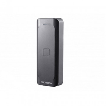 Считыватель карт Mifare Hikvision DS-K1802M предназначен для работы в составе системы контроля доступа. Устройство заключено в корпус, защищенный от влаги и пыли согласно требованиям стандарта IP65. Дистанция считывания — до 50 мм, рабочая частота — 13.56 МГц, стандарт — ISO 14443-A, интерфейс — Wiegand 26/34. Модель базируется на 8-битном процессоре, оснащена LED индикатором и бипером (коннект, питание, доступ разрешен/запрещен). Питание — DC 12 В, рабочий ток — 160 мА. В режиме максимальных нагрузок считыватель потребляет не более 2 Вт. Габариты — 115.9×43.3×17.0 мм. Тип монтажа — накладной