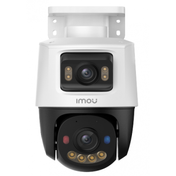 Imou Cruiser Dual 2 10MP — уличная поворотная Wi-Fi-камера с двумя объективами по 5 МП (суммарно 10 МП), обеспечивающими одновременный обзор двух направлений. Один объектив фиксированный (угол обзора ~78° по горизонтали, ручной поворот до 260° и наклон до 30°), второй — моторизованный с поворотом на 355° и наклоном на 90° для полного контроля пространства. Камера поддерживает ночное видение до 30 м в четырёх режимах (ИК, цветной, Smart и отключённый), оснащена прожектором, сиреной 110 дБ и красно-синим сигналом для активного отпугивания. Поддерживаются интеллектуальное обнаружение людей и автомобилей (IMOU SENSE), автоматическое слежение (Smart Tracking), двусторонняя аудиосвязь, 8× цифровой зум и сжатие H.265/H.264. Видео хранится на MicroSD до 256 ГБ, в облаке или NVR. Подключение — Wi-Fi 6 (2,4 ГГц, две антенны) или Ethernet, питание — DC 12 В, энергопотребление менее 12 Вт. Корпус защищён по стандарту IP66 и работает при температуре от −30 °C до +60 °C.