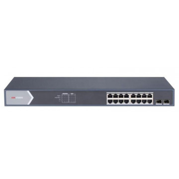 ∙ 16 × гигабитных портов PoE, 2 × гигабитных оптоволоконных порта SFP